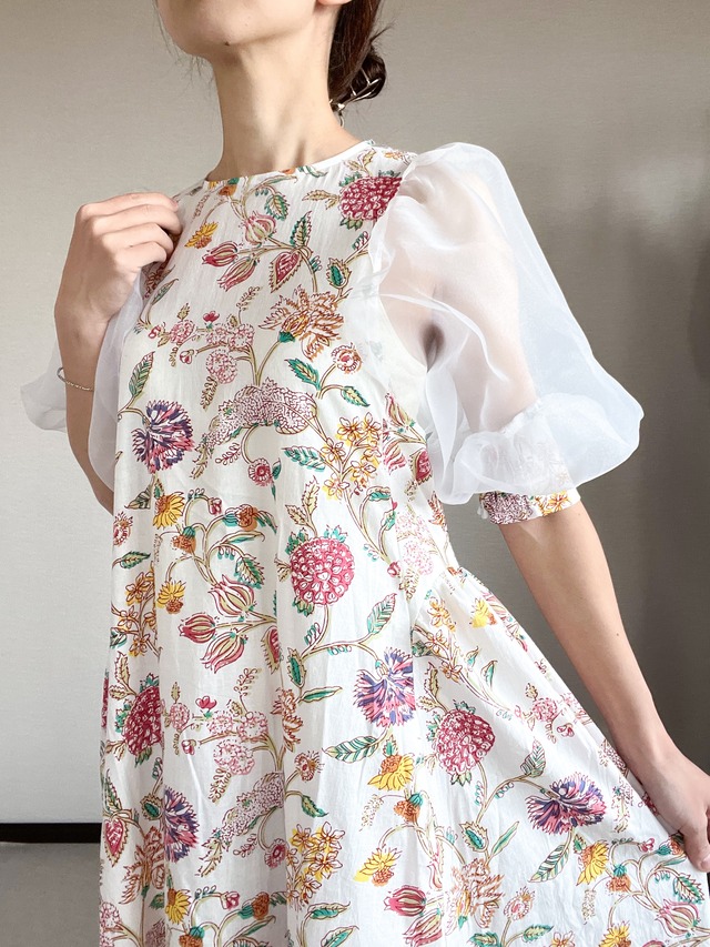シアーパフスリーブワンピース -フルール・レモネード-