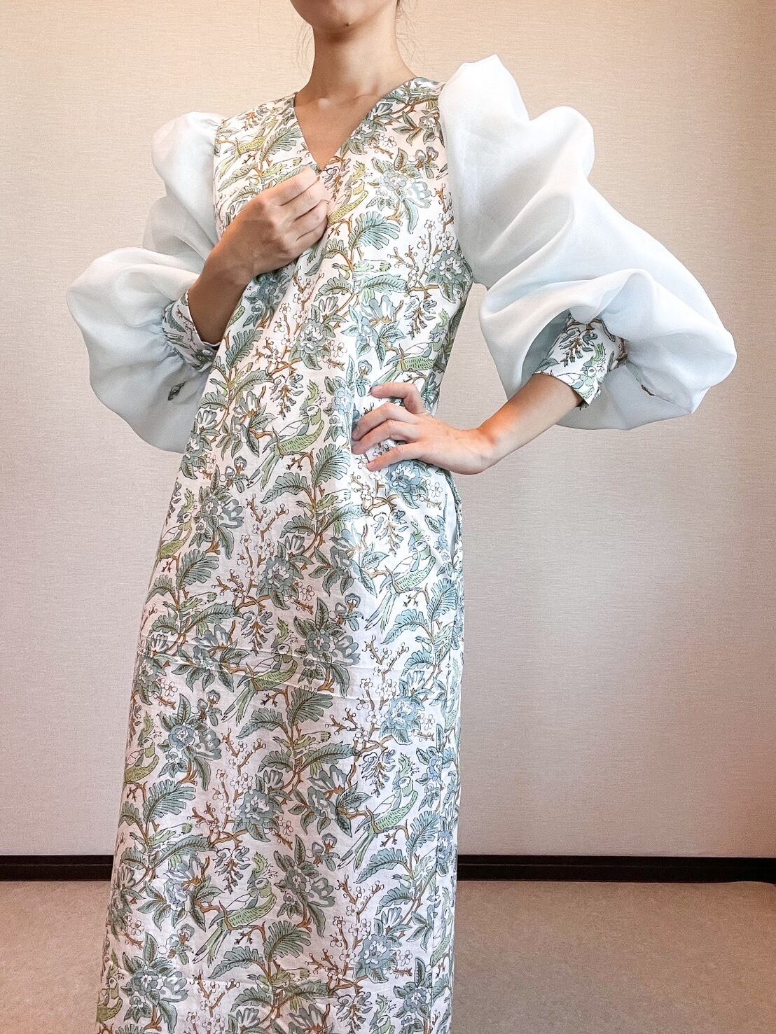 私服としても楽しめる、ブロックプリントオケージョンドレス
