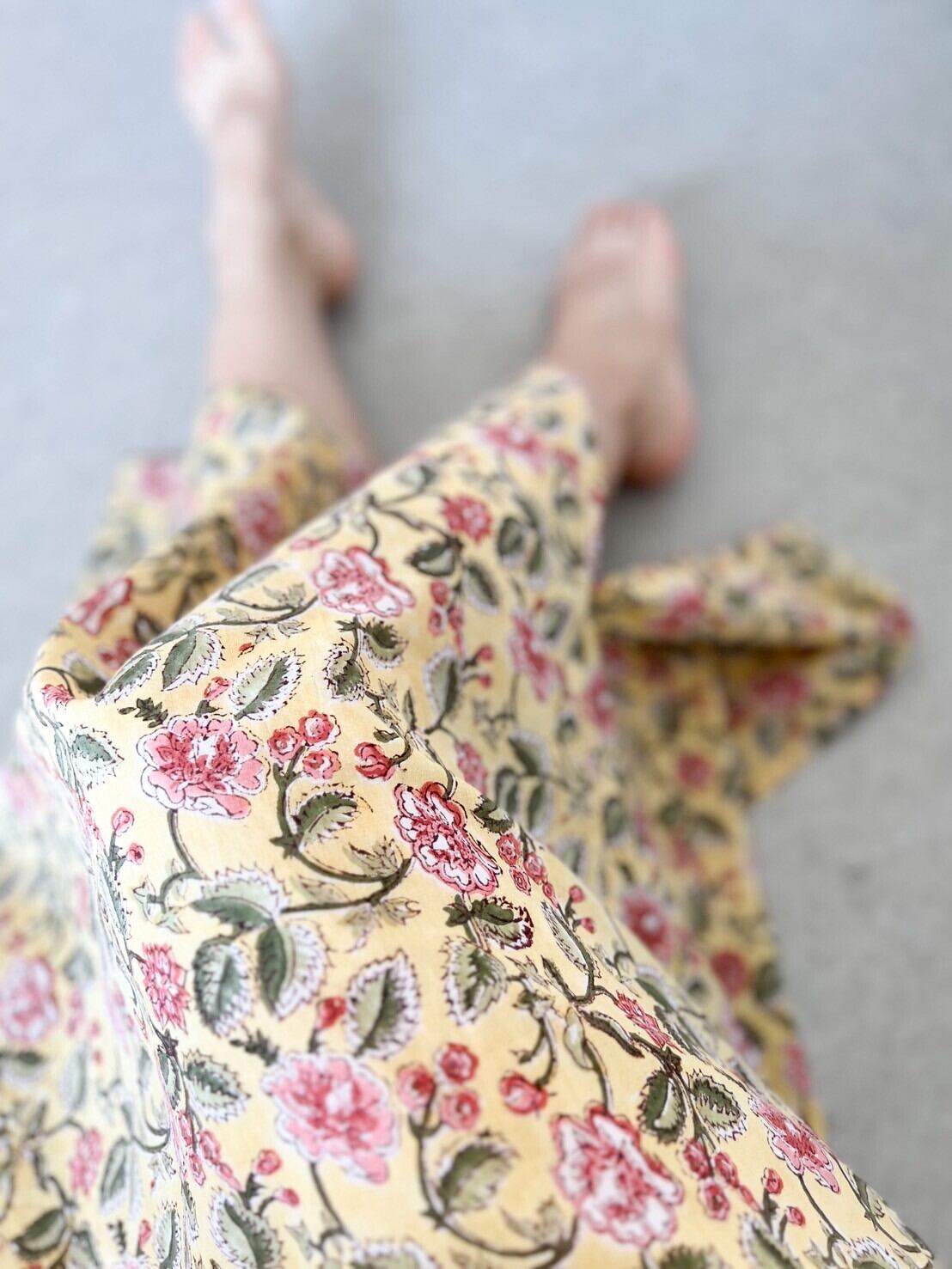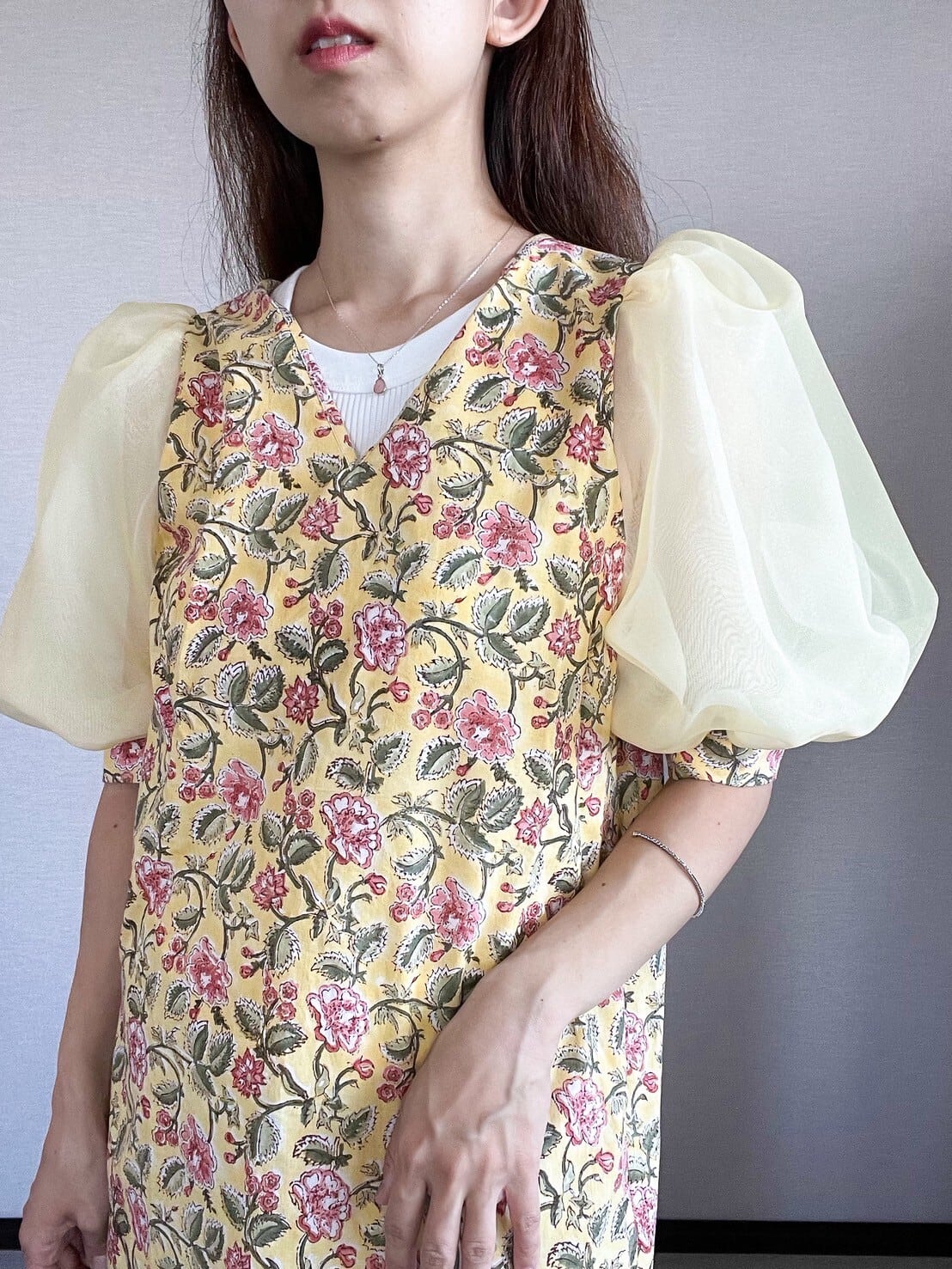 フルール・レモネード シアーパフ ブロックプリントワンピース