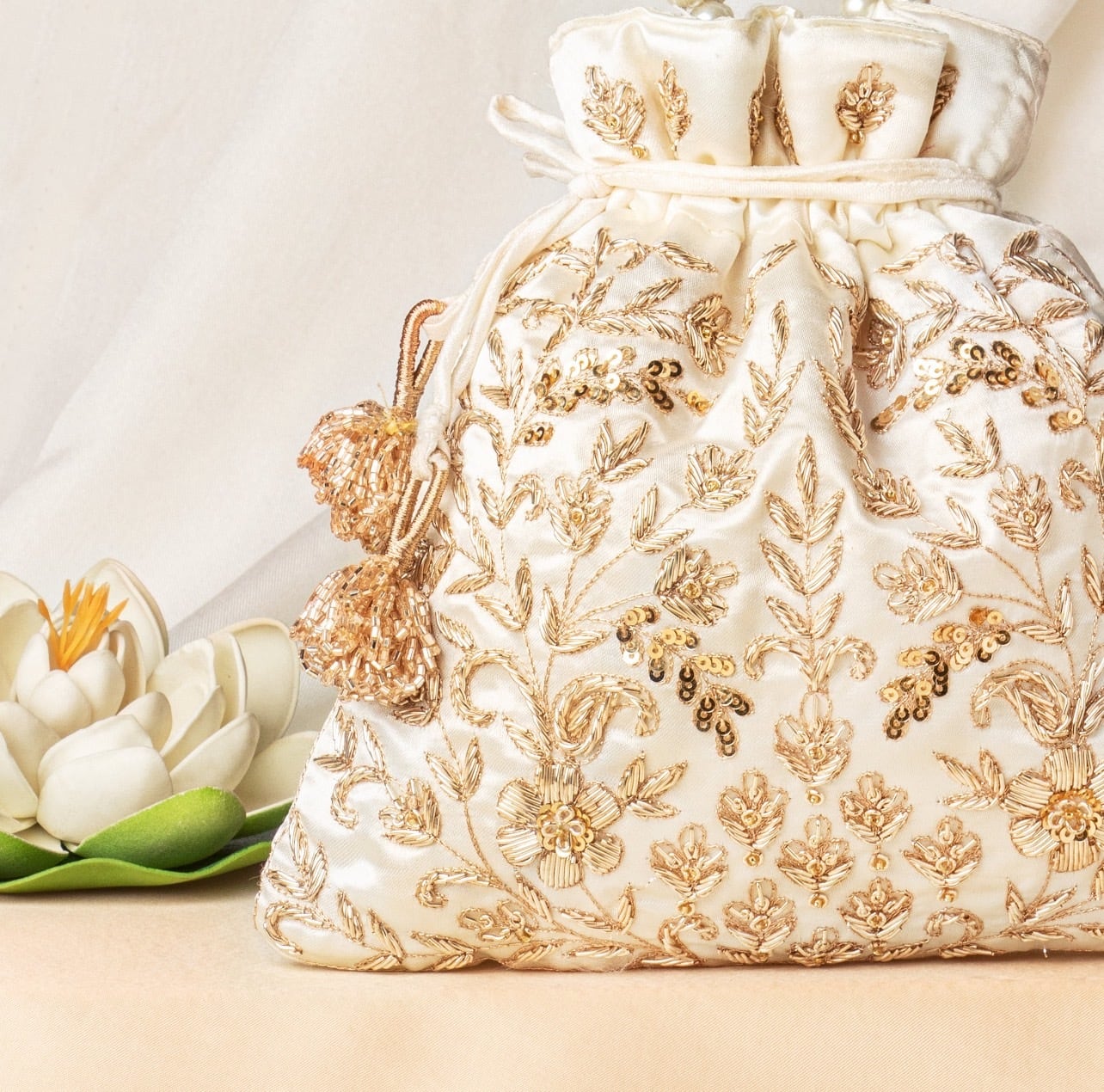 【11/22 21:00~23:59 販売開始<数量限定>】GOLD Zarini ~インド刺繍×インド刺繍 巾着バッグ ~