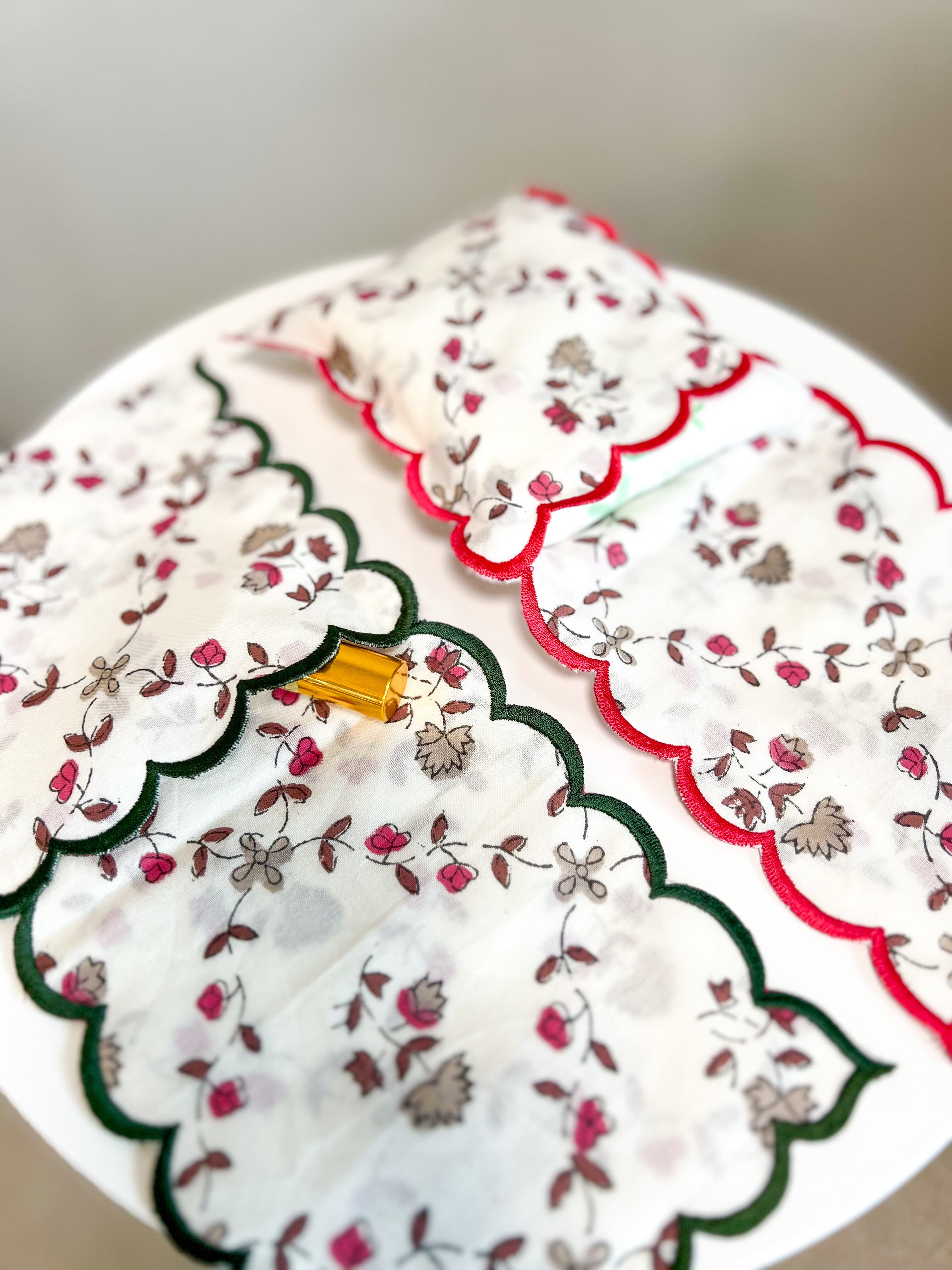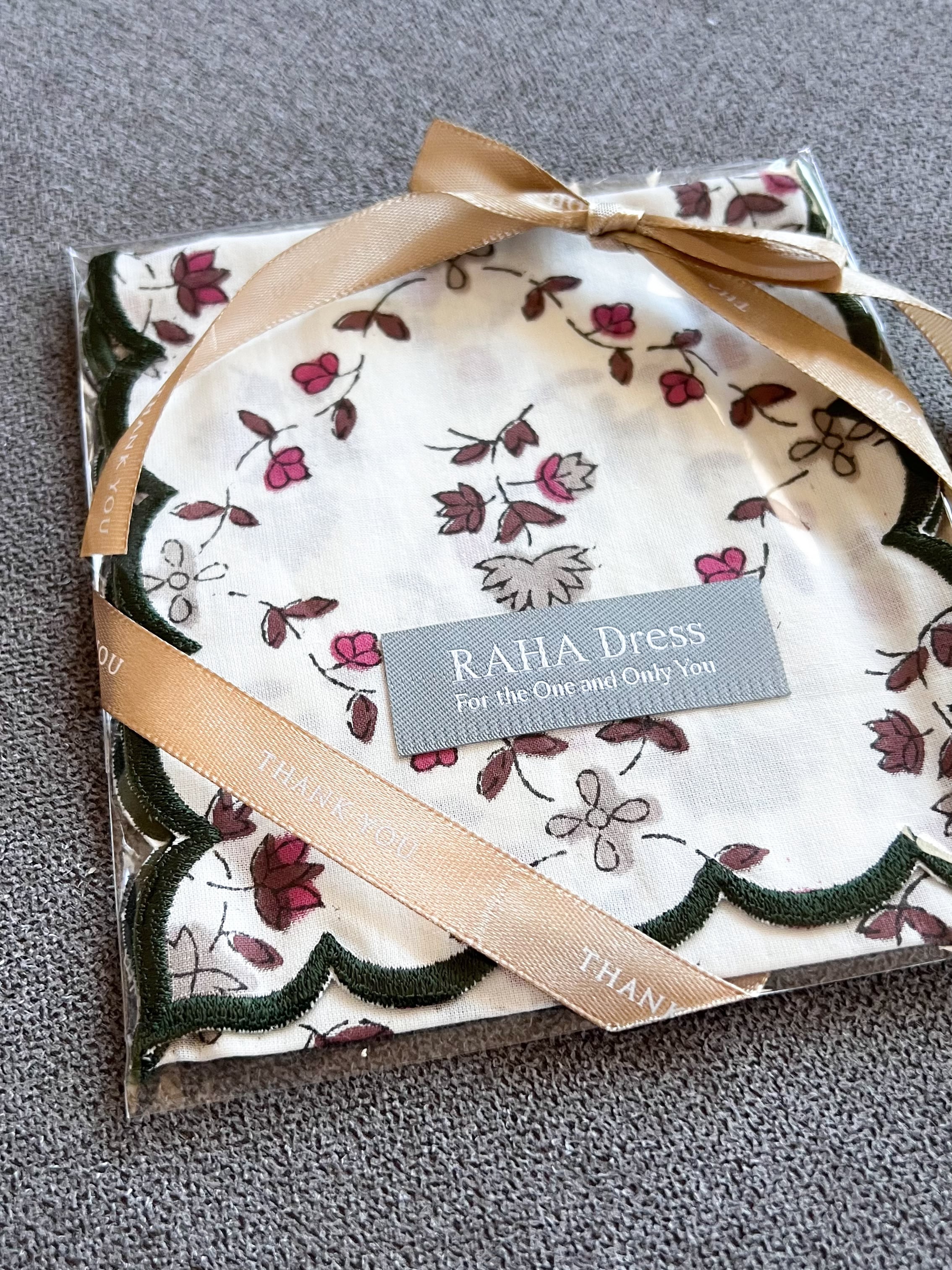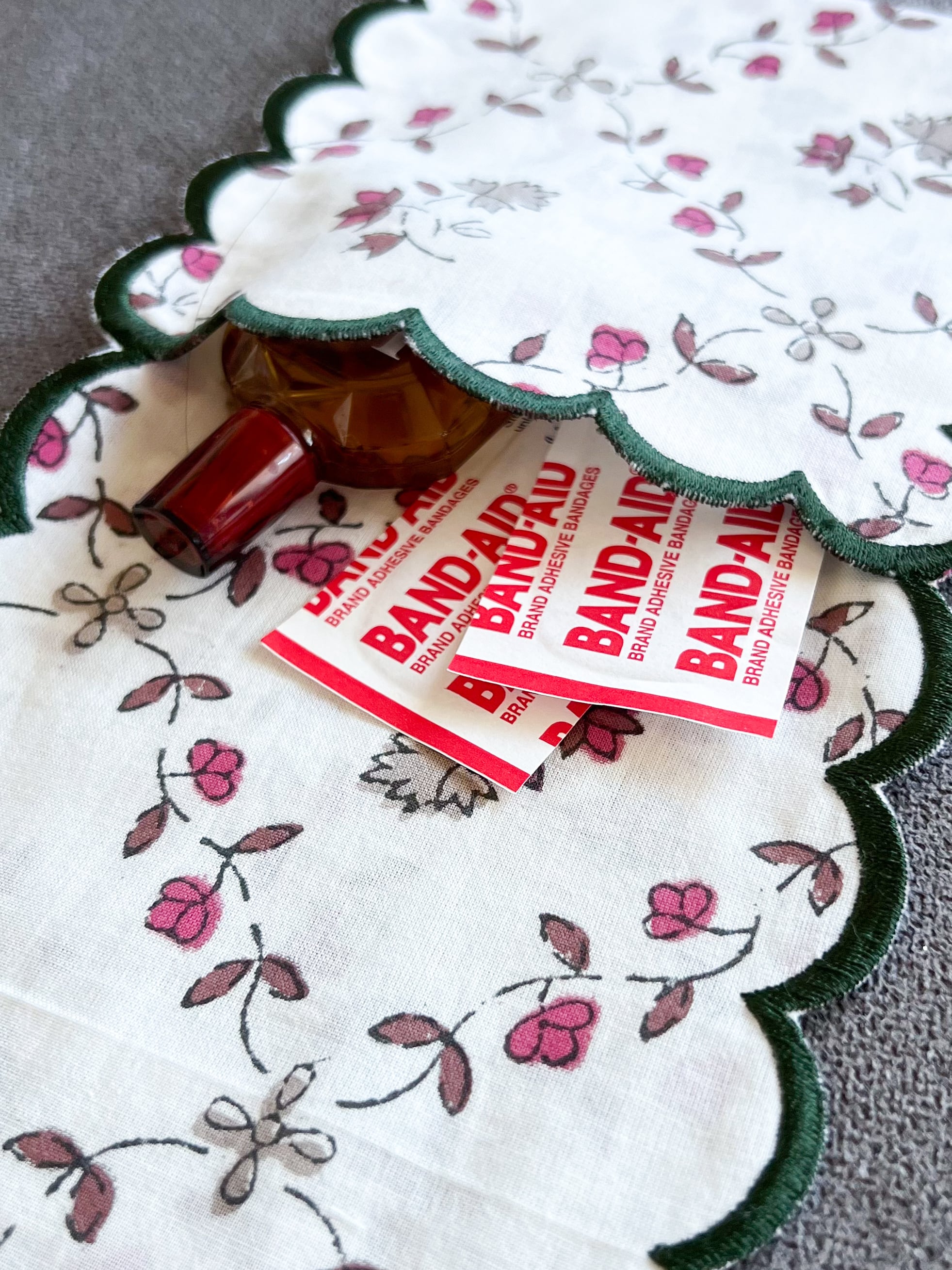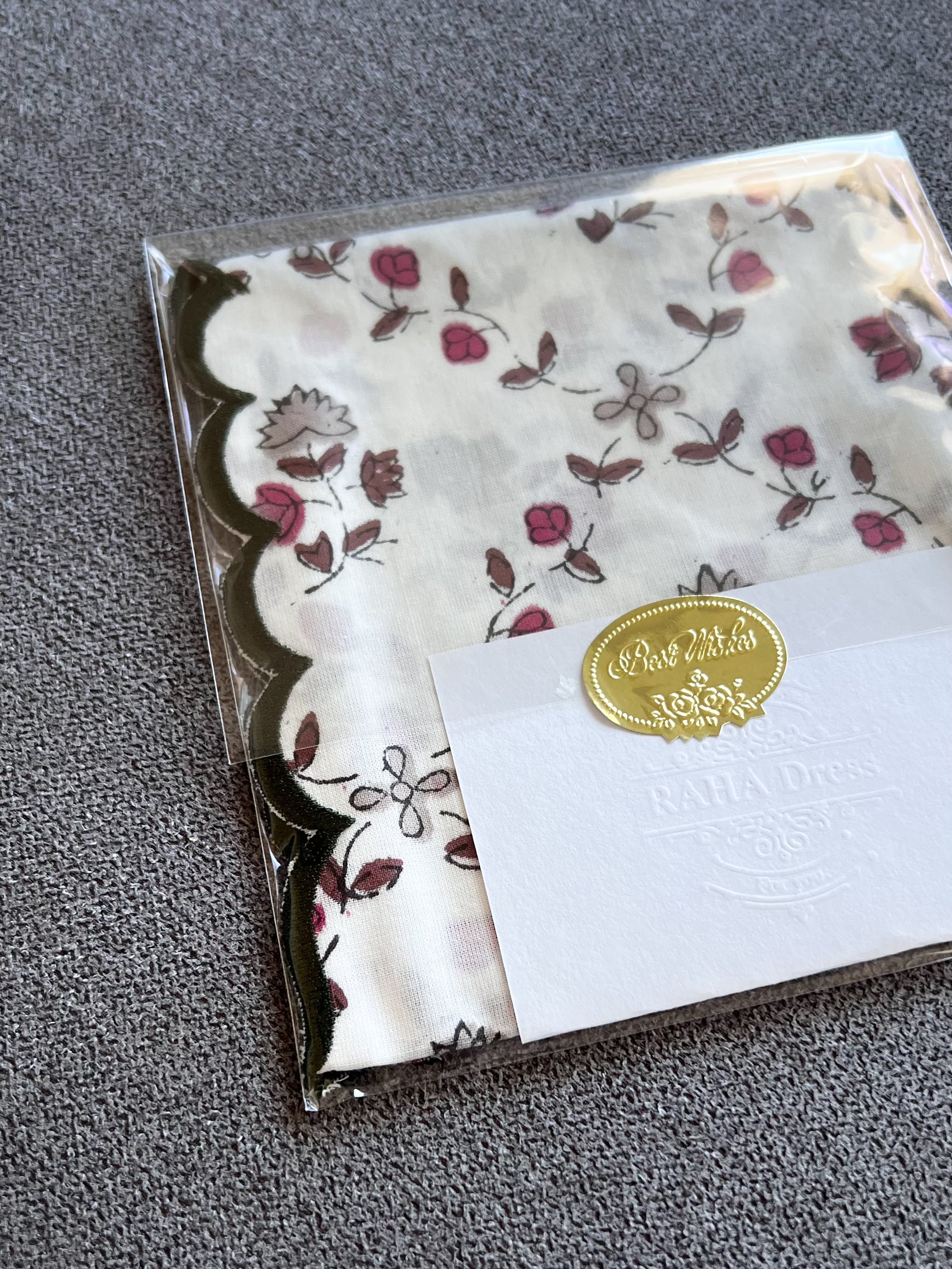 【12/12 12:00〜 販売開始 <数量限定•即納>】<Green >ハンドブロックプリント スカラップ刺繍 ハンカチポーチ