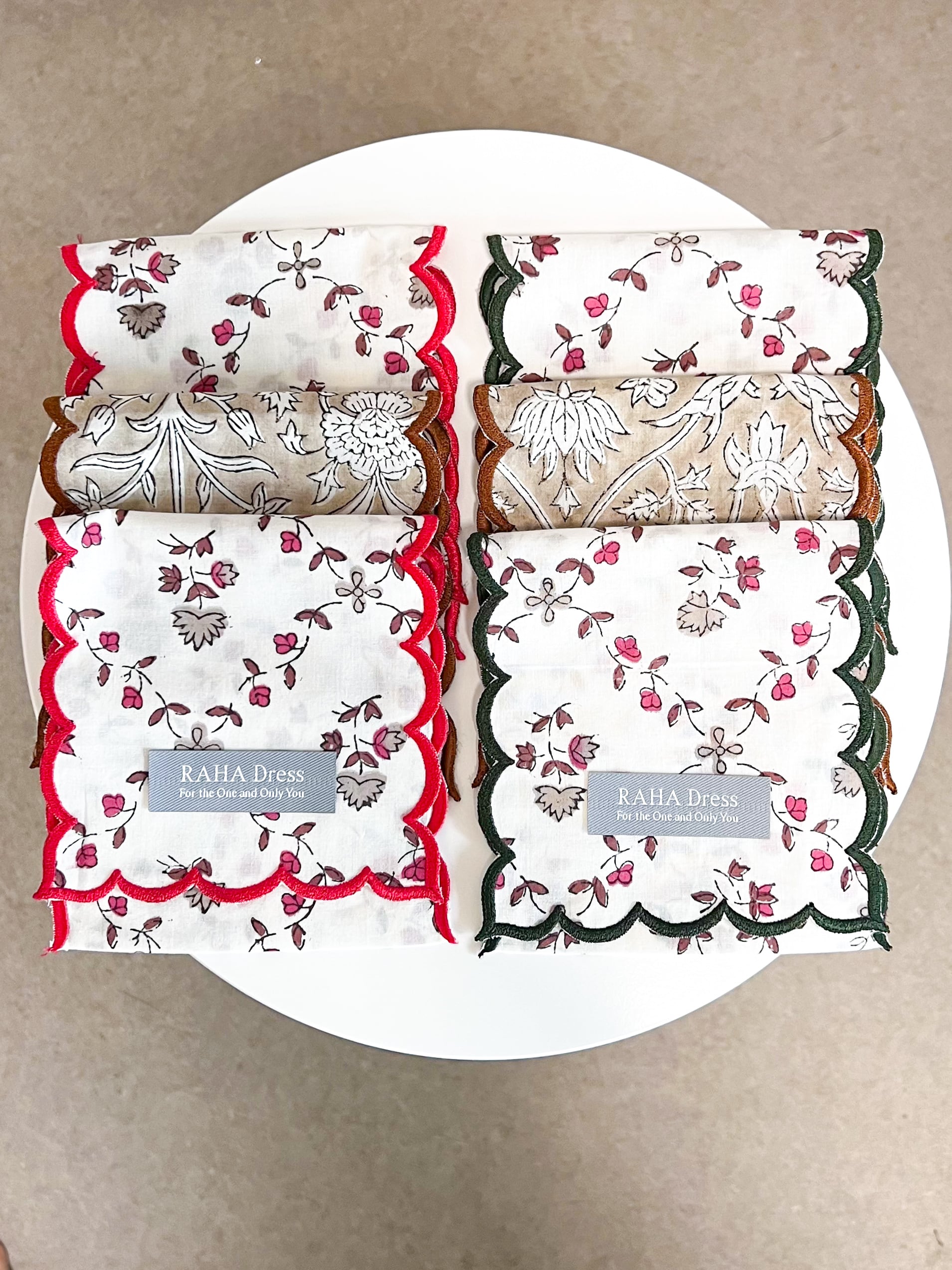 ハンドブロックプリント スカラップ刺繍