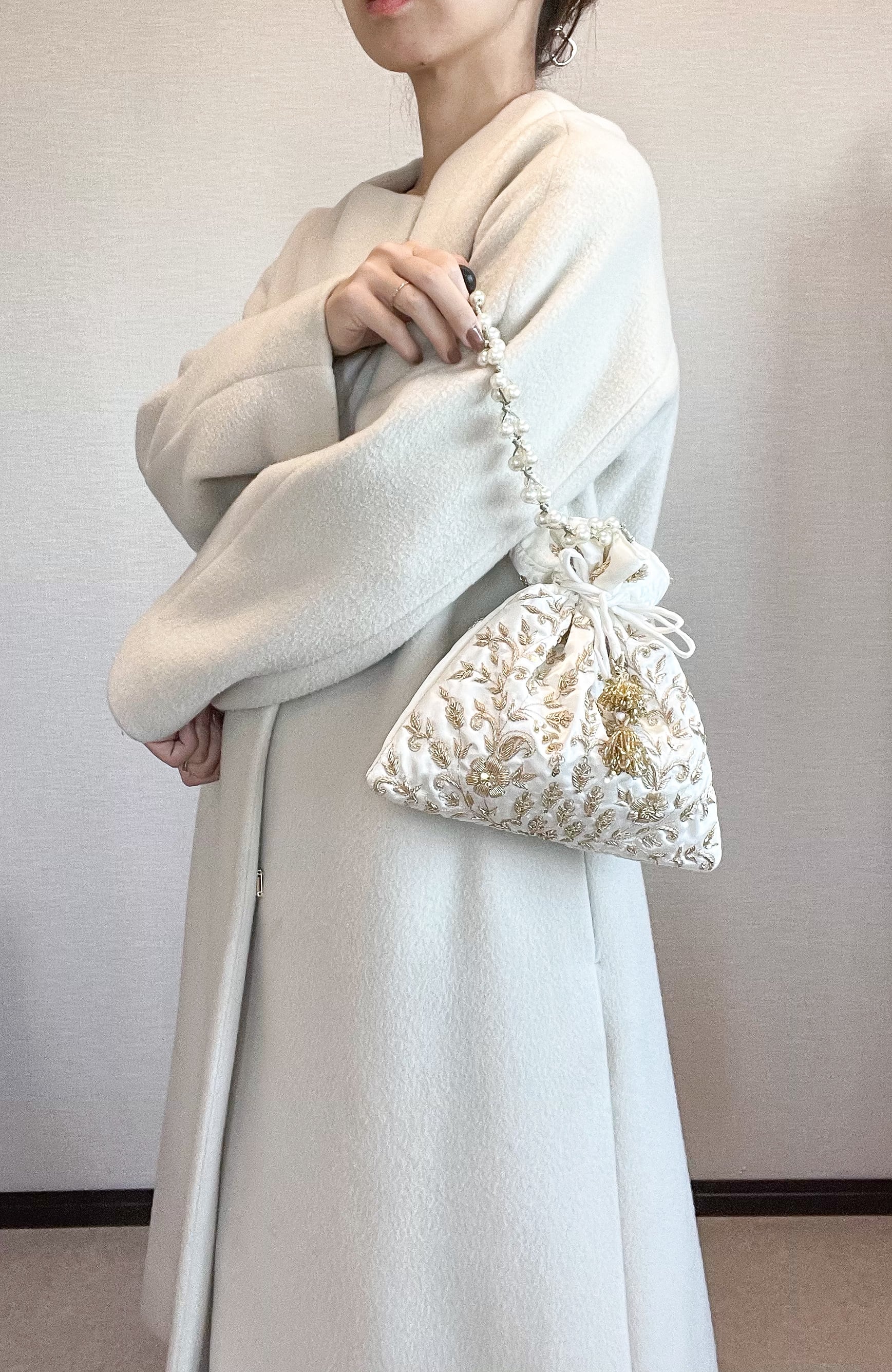 ひとつは持っておきたい!華やかインド刺繍巾着バッグです。