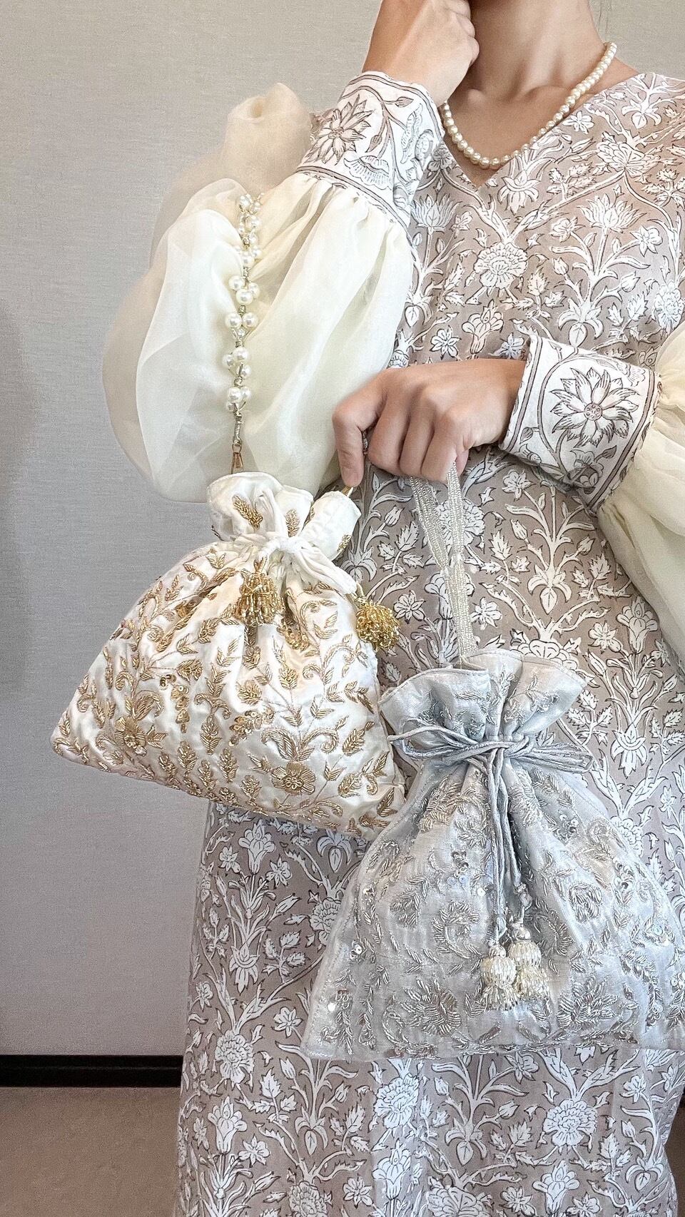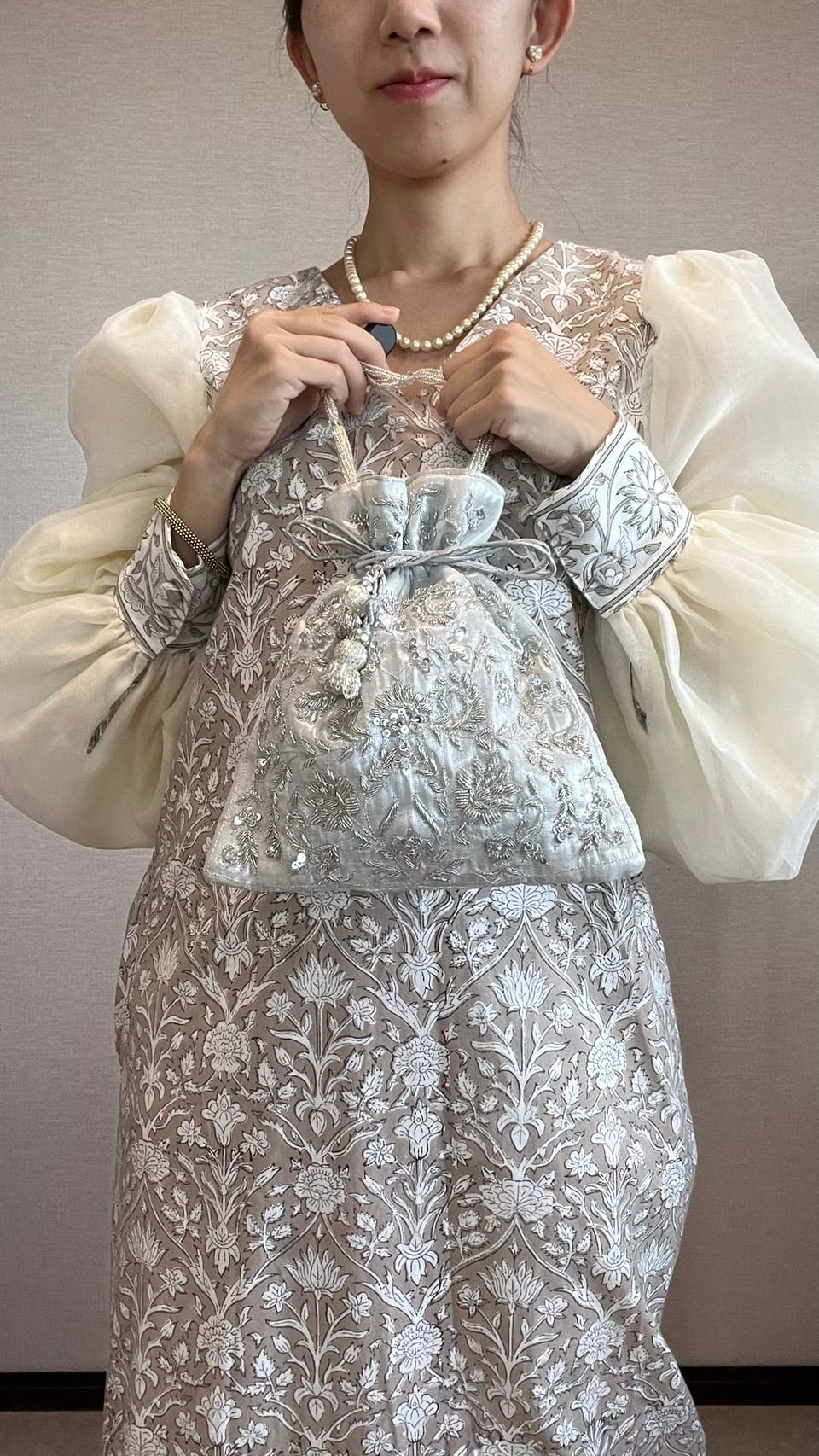 金糸や銀糸を使った立体的で繊細な、とても華やかな手刺繍です。