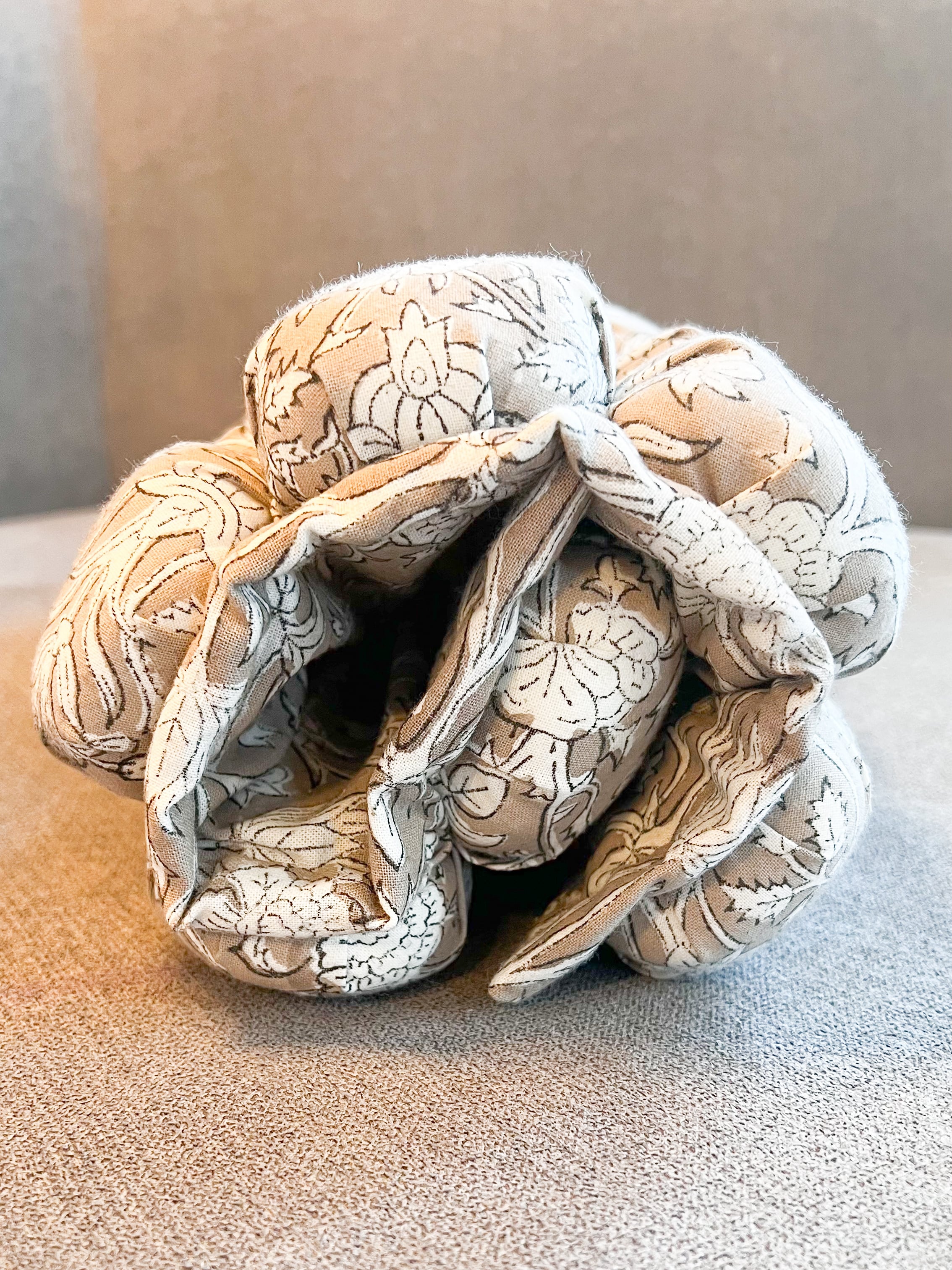 インド綿のハンドブロックプリントを組み合わせてお作りしています。