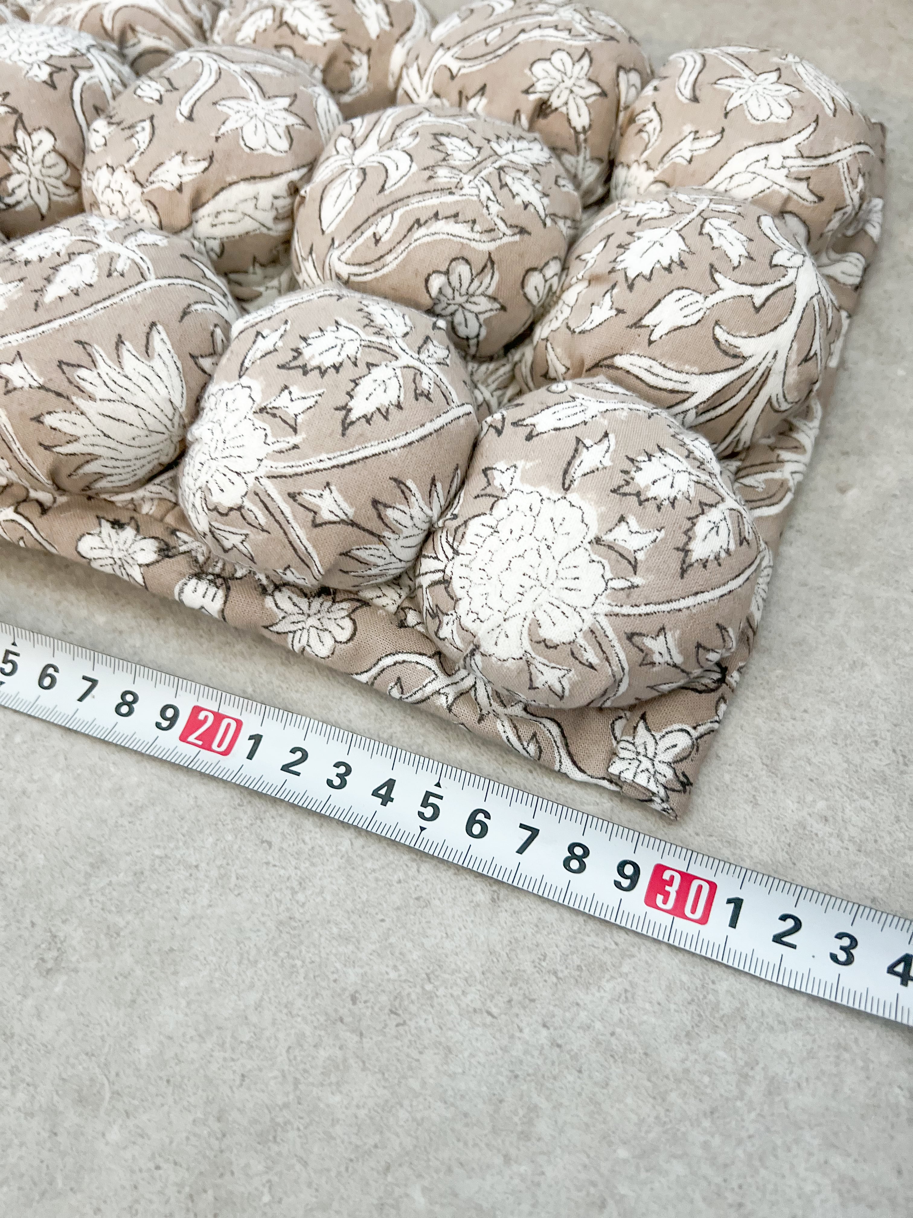 素材はインド綿のため、濡れた状態や湿気の強い場所での使用は色移りの可能性があります。ご注意ください。